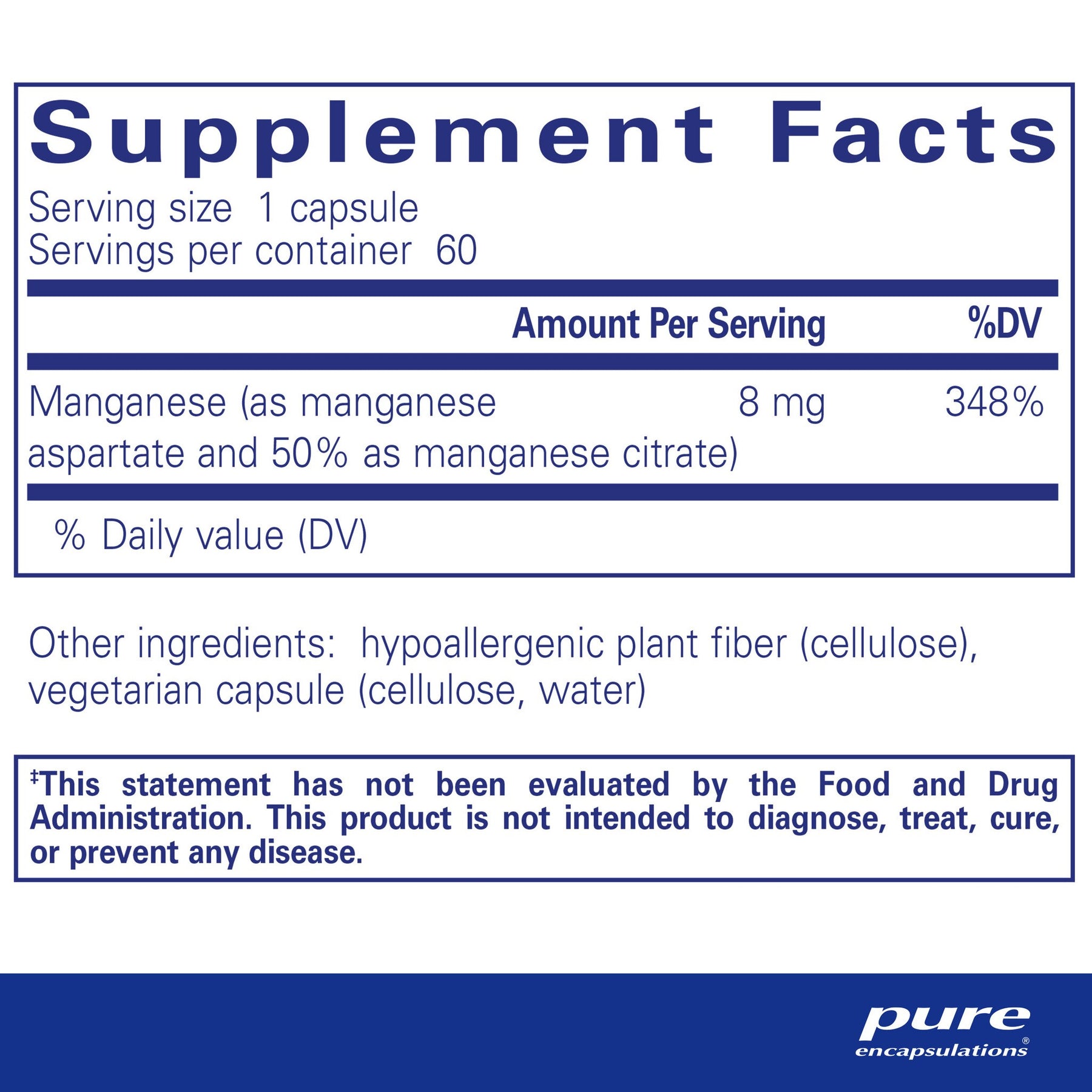 Manganese activates numerous enzymes necessary for the utilization of biotin, thiamin, and ascorbic acid. It is a catalyst in the synthesis of fatty acids and cholesterol, and it plays a part in protein, carbohydrate, and fat production. Manganese is necessary for normal skeletal development and maintenance of connective structural tissue and cellular integrity. In addition, it influences the synthesis of mucopolysaccharides, and is a necessary cofactor in the detoxification of ammonia to urea.