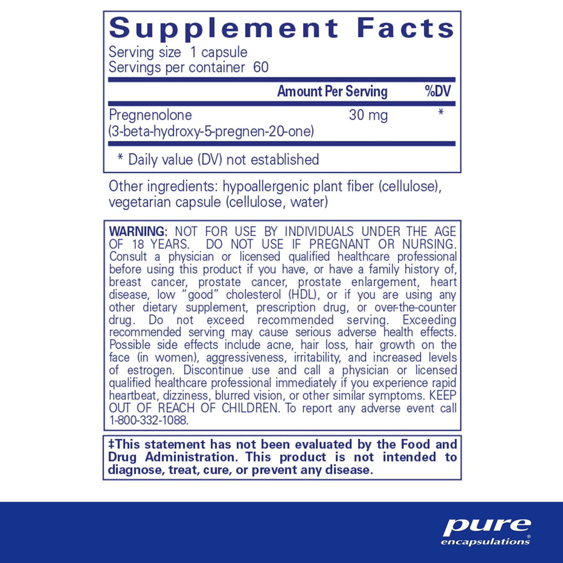 Pregnenolone, 3-beta-hydroxy-5-pregnen-20-one, is a natural steroid hormone produced in the body from cholesterol. It has been described as the "Grandmother of all Steroid Hormones," since all steroid hormones, over 150 of them, are derived from pregnenolone. Pregnenolone has been linked with positive support of the immune system, mood and memory. In the body, it is converted to DHEA and/or progesterone. It is likely that the body will convert pregnenolone appropriately, according to its needs. Studies show that the body makes 60% less of this hormone at age 75 than it does at age 35.